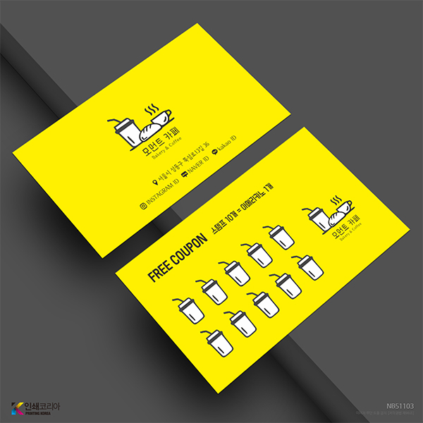NB51103_베이커리 카페 명함디자인 : 카페 커피숍 도장쿠폰 빠른 인쇄 제작