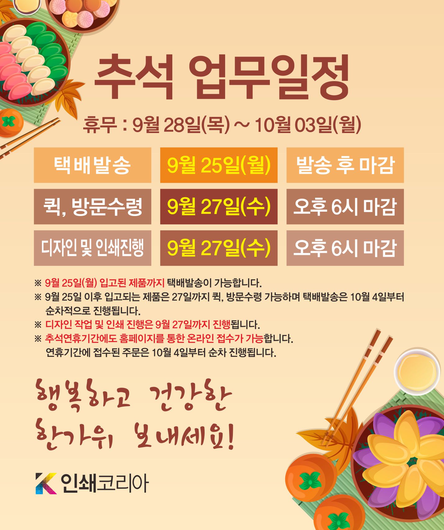 2023 추석 업무일정 안내 (9월 28일~10월 3일)