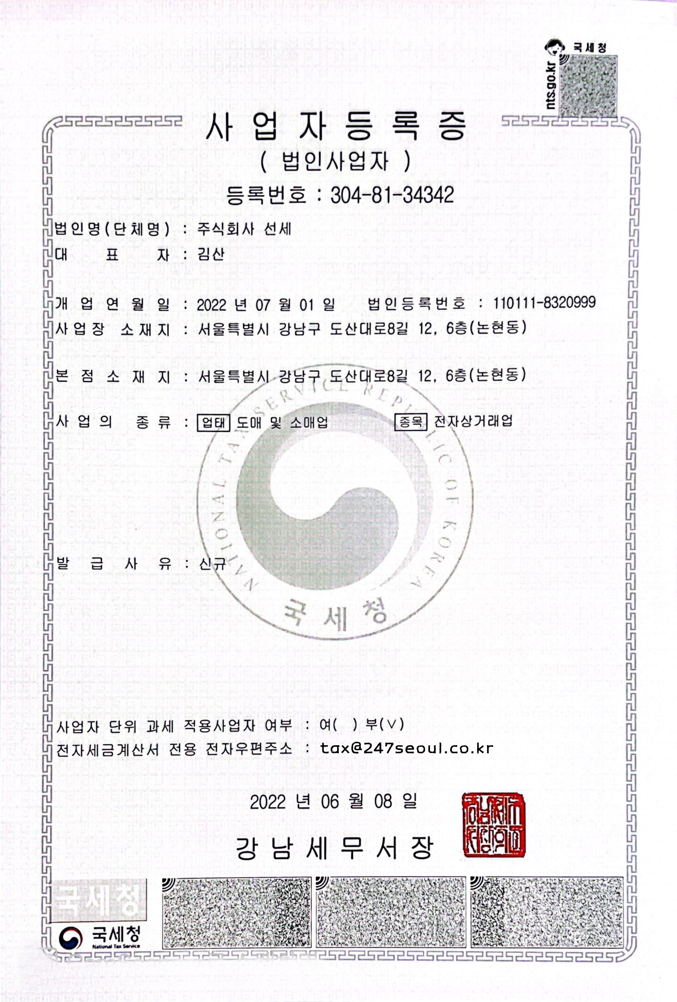 세금계산서용 이멜은 tax@247seoul.co.kr 입니다.