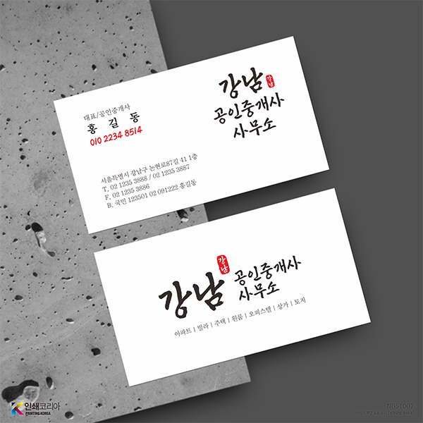 NB51007_공인중개사·부동산 디자인명함: 캘리그라피 손글씨체