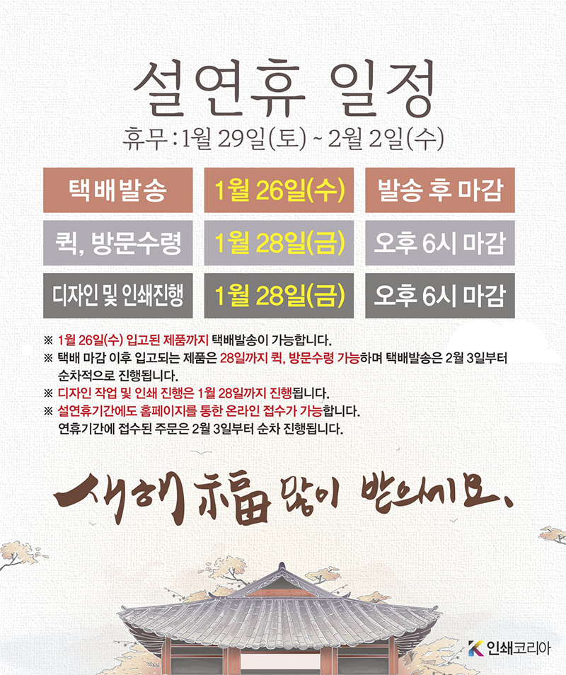 주문제작 특성상 입금확인 후 디자인 및 인쇄가 진행됩니다.