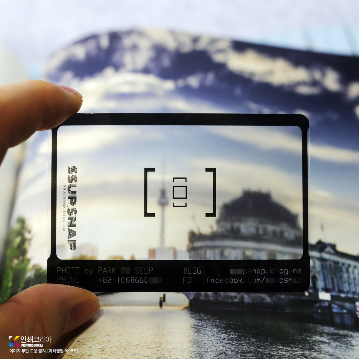 질 자체는 좋습니다. 글자가 굉장히 선명하고 용지질감이 보이는 소프트한 광 재질이라 촌스럽지 않고 무거운 느낌을 줍니다. 다만 아무리 인쇄시 색차이가 나고 뒷배경이 비친다고는 하나, 인쇄된 흰색이 거의 차가운 파란색이 도는 회색에 가깝습니다. 선명하게 인쇄되어서 그렇지 아니었다면 개인적으로 글자가 묻히는 느낌이 많이 드는 것 같습니다.사진은 형광등 아래의 제가 직접 보는 색감과 가장 유사하게 보정했습니다. * 참고하실 점* 1. 저는 제가 디자인을 해서 psd 파일로처음에 보냈습니다만, 이 타입은 ai 파일로 작업해야 한다더요. 참고하세용~ (그래서 선명하게 나온 것 같습니다!) 2. 분위기 자체는 좋은데 난 무조건 선명해야해!! 하시는 분은 다른 타입을 고르시는게 좋을 것 같구요. 오히려 난 이뻐야해!! 하시는 분은 요것도 괜찮은 것 같습니다. |