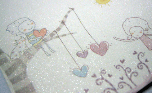 약한 아이보리색상에 은색 펄 입자가 살짝 뿌려져 있는 듯한 재질 입니다. 재질이 매끄럽고 환상적인 고품격 수입지 입니다.