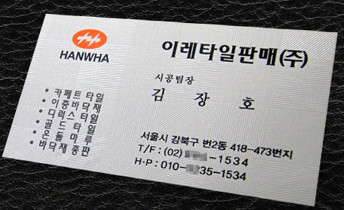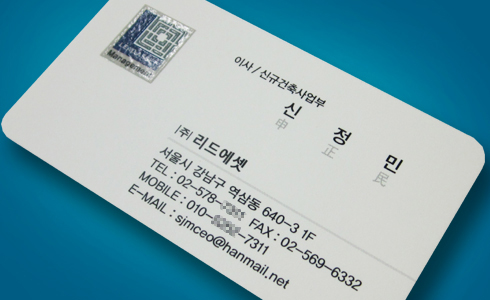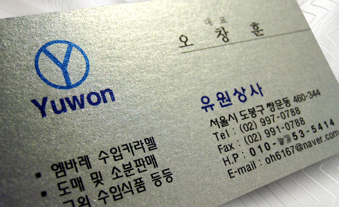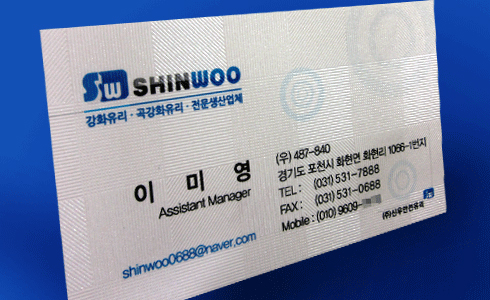 - 특징 : 잔잔한 물결문양 엠보가 손끝으로 느껴지는 기분좋은 명함