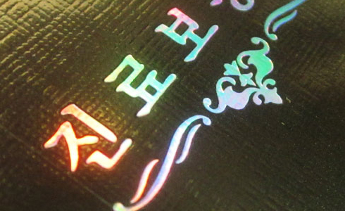 보는 각도에 따라서 화려한 빛을 뿜어내는 개성있는 후가공으로서 홀로그램박원단을 열을가하여 접합하는 인쇄방법입니다. 크기는 60x30mm이하로 원하시는 모든형태가 가능하며, 더 큰사이즈를 원하시는경우 별도 견적이 필요할 수 있습니다.